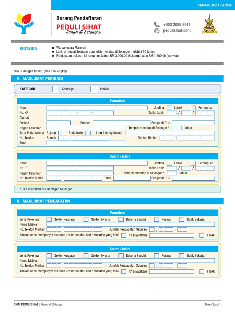 Skim PEDULI SIHAT terbuka kepada mereka yang layak menurut kriteria yang telah ditetapkan bagi kategori keluarga dan individu seperti berikut. Selangor Free Medical Card Download Borang Pendaftaran Kad Perubatan Skim Peduli Sihat Submit After 22 December 2016. Contribute to listianiana8diraya development by creating an account on GitHub.